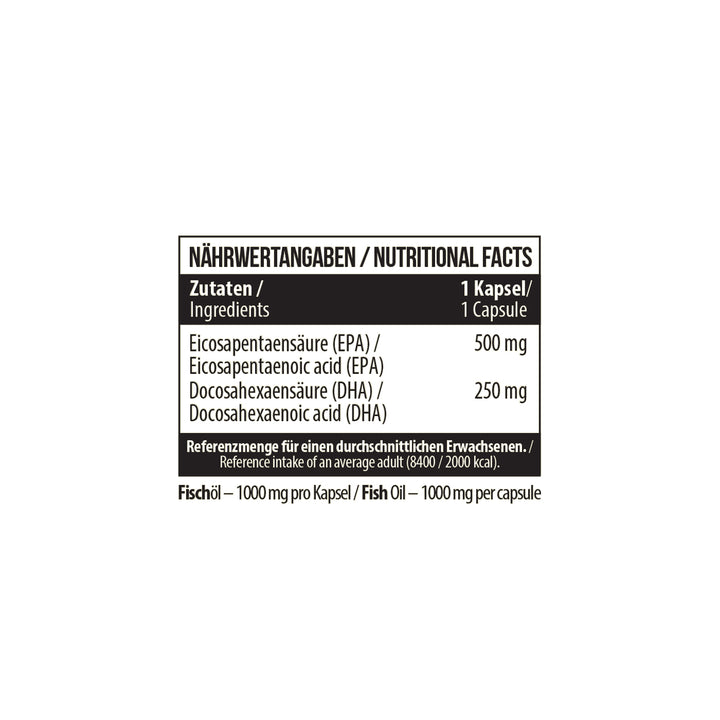 - 500 mg de EPA y 250 mg de DHA por cápsula